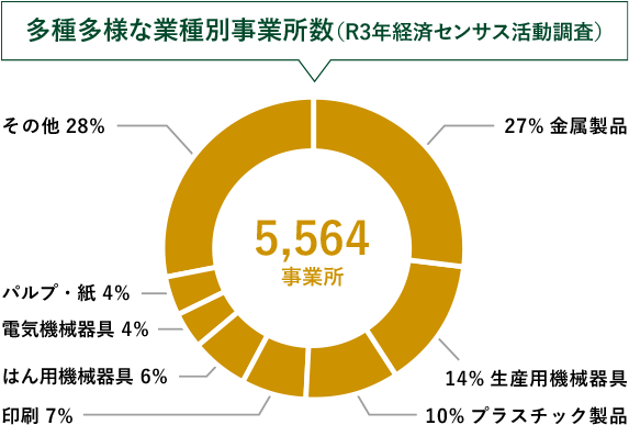 また、活発な異業種交流グループがたくさんあり、そこで情報交流が行われることで新たな業界参入や技術の習得のきっかけになるなど相互が高め合える地域となっています。