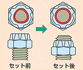 - 締結イメージ。バネの作用効果を利用することで、振動や衝撃に強い構造になっています。